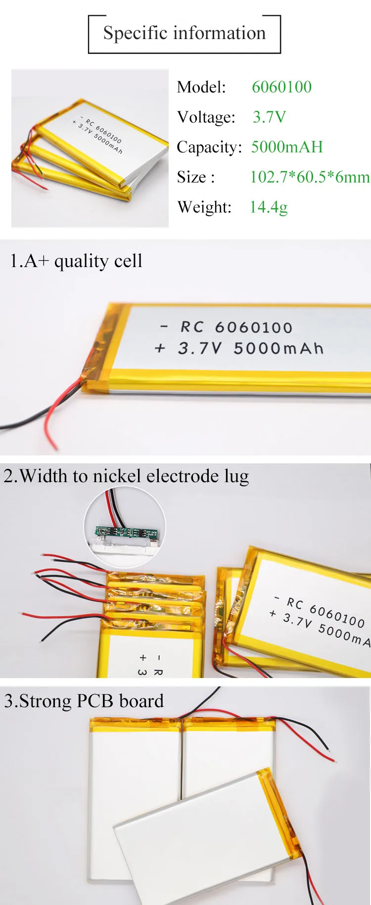3.7V 5000mAh lithium polymer battery
